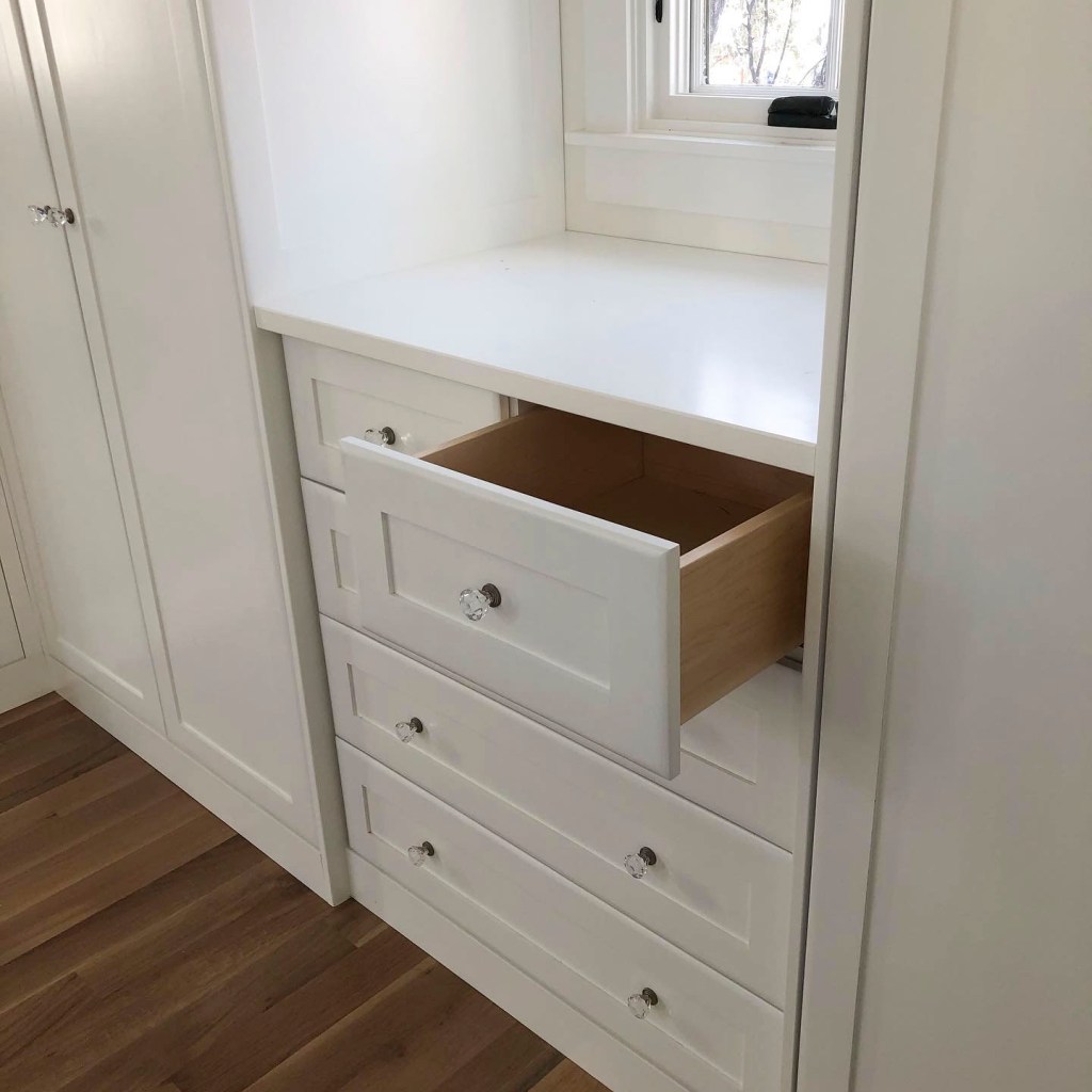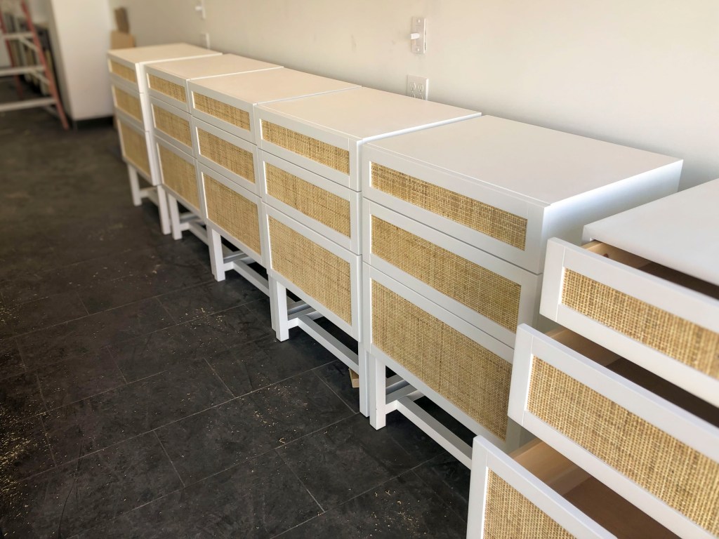 All of our projects are handmade in our custom woodworking shop, every detail is cared for; from sanding a smooth finish, tight joinery and high quality sprayed finishes